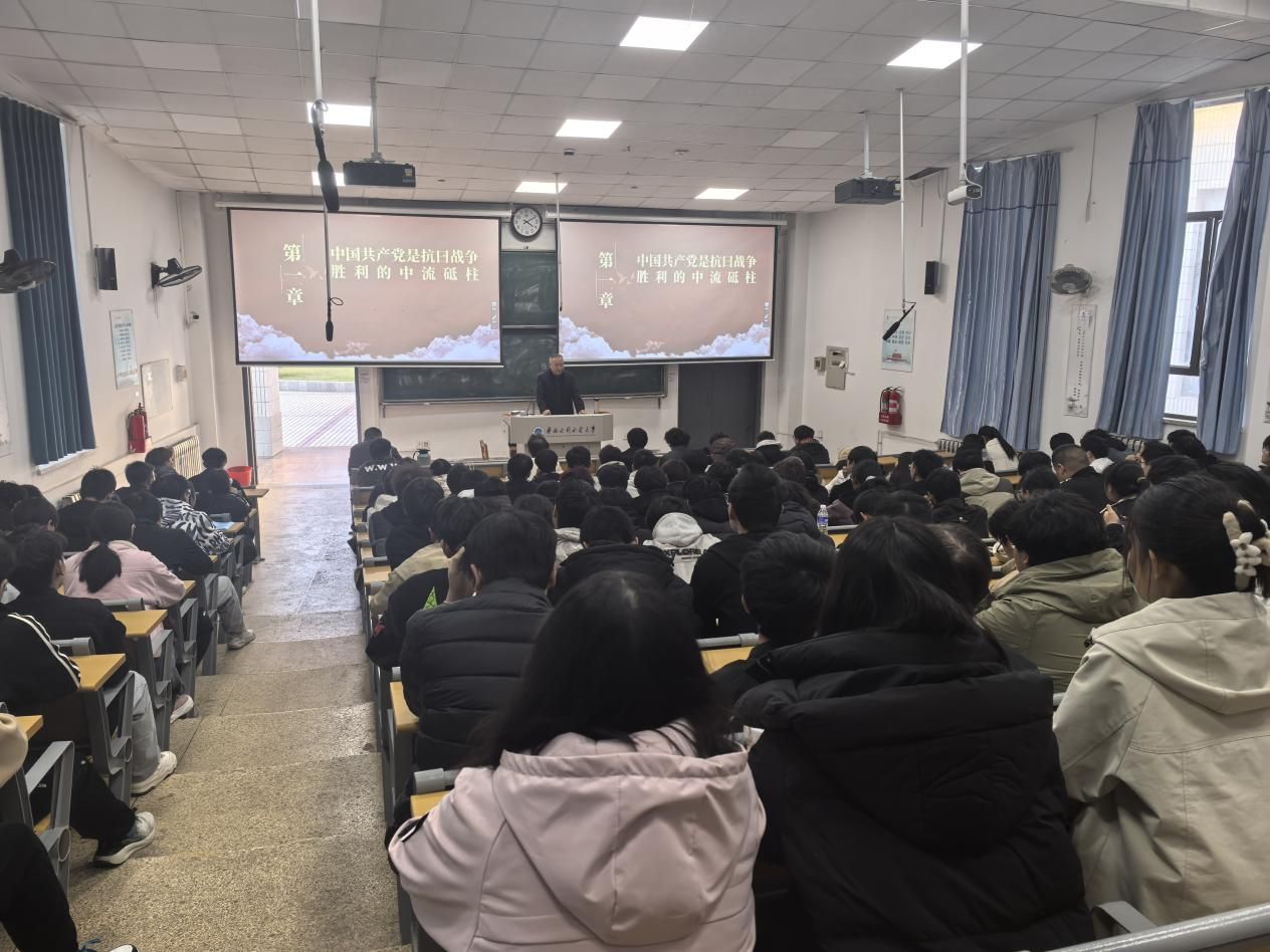 为聚焦青年思想价值引领,传承红色基因与伟大抗战精神,11月20日下午,我院在花园校区讲堂五举办“中国共产党在抗日战争中的地位和作用”为主题的德育宣讲活动。本次宣讲会由校关工委副主任荣四海主讲。我院辅导员史然及2025级学生参加,活动由学院党委副书记刘林飞主持。