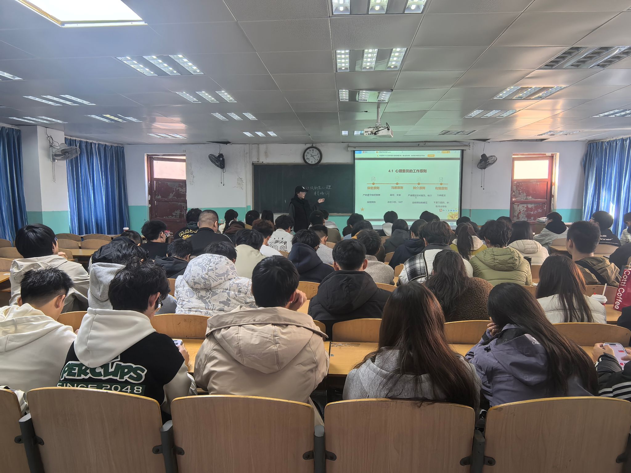 培训中,主讲教师先以数据呈现大学生心理健康现状,指出新生适应压力问题,强调心理委员“示范者”“传声员”“排雷兵”“支持者” 的四维角色定位,明确其终身学习、自我管理等五大职责,并介绍全国心理援助热线及校内咨询预约方式。