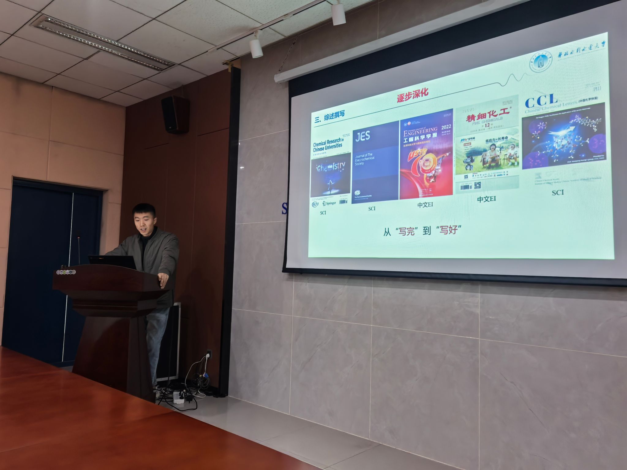 材料学院已成功举办三届学术论坛,作为研究生重要的学术交流活动之一,希望参会研究生能勇于提出科学问题,在交流碰撞中激发创新火花。本届论坛特别邀请学院付少利、郭仕权两位老师带来特邀报告:付少利老师围绕“高性能铜(钛)合金组织性能研究”,分享合金材料优化的关键技术与实践心得,郭仕权老师以“纳米纤维/MOF衍生电催化剂的设计构筑与性能研究”为题,深入解析新型催化材料的工艺流程、亮点和应用,同时进行了综述写作的经验分享。
