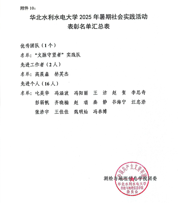 测绘与地理信息学院2025年暑期社会实践取得圆满成功,经学院评估审核,现将表彰人员院级初审名单做出公示。