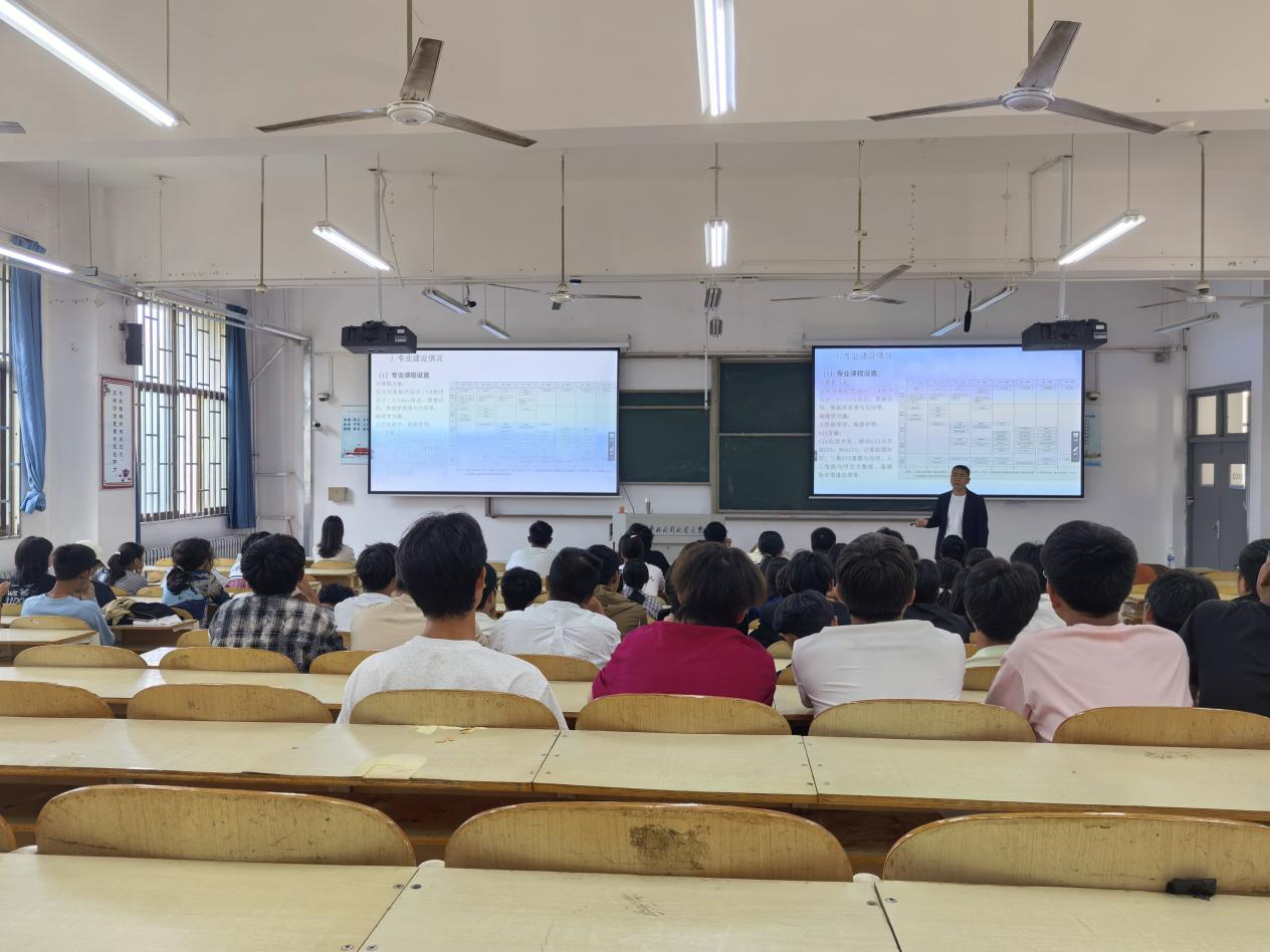在专业人才培养体系介绍环节,测绘工程教研室主任马开锋以“遥测天地、智绘未来”开篇,系统介绍测绘专业以现代空间测量技术为核心,融合北斗导航、精密工程测量等方向的课程模块。地理信息科学教研室主任邓荣鑫以“智慧空间的大脑”为喻,生动讲解GIS专业通过空间数据分析与可视化,服务于城市规划、应急管理等领域的应用前景。遥感科学与技术教研室姚盼盼老师通过展示遥感影像,阐述遥感技术作为“感知地球的天眼”在资源调查、环境监测中的重要作用。三位老师的专业介绍各具特色,深入浅出,增强了新生对专业的认同感。