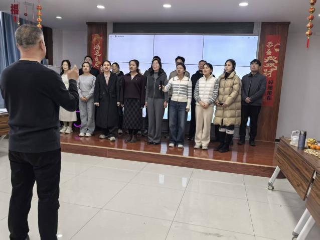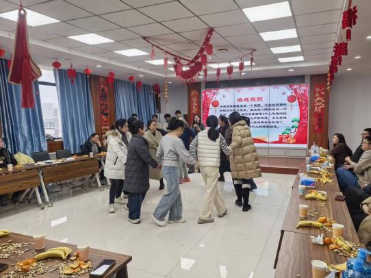 节目间隙穿插的趣味游戏让现场气氛高潮不断。“顶气球比赛”紧张激烈,轻松活泼,“抱团打天下”在笑声中锻炼了老师们的迅速反应能力,“抢凳子”游戏妙趣横生。教职工们踊跃参与,互动热烈,会议室里充满了欢声笑语,其乐融融。