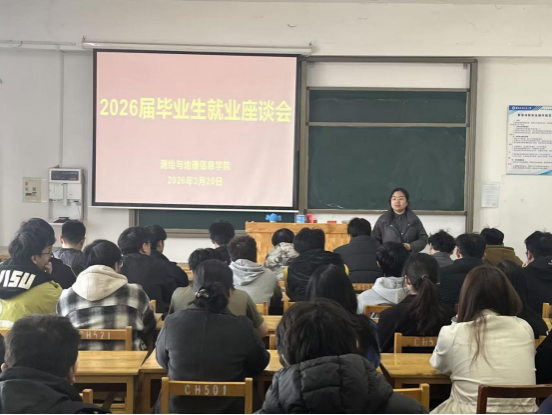 为扎实做好2026届本科毕业生升学就业指导工作,精准解决考研复试调剂、求职就业等面临的实际问题,3月20日下午,测绘与地理信息学院在501教室举办2026级本科毕业生就业座谈会。学院党委书记郭贵海、党委副书记王怡青、辅导员侯伟男出席会议。会议由王怡青主持。