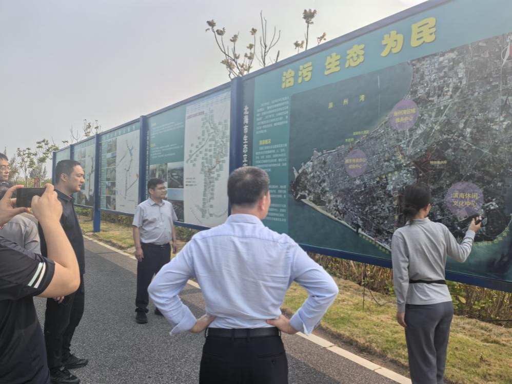 在北海市冯家江流域生态修复工程现场,项目组围绕流域生态治理、岸线整治和区域生态修复实践开展现场比对与技术讨论,进一步梳理北部湾典型区“地表治理—地下水响应”协同分析的基础条件。