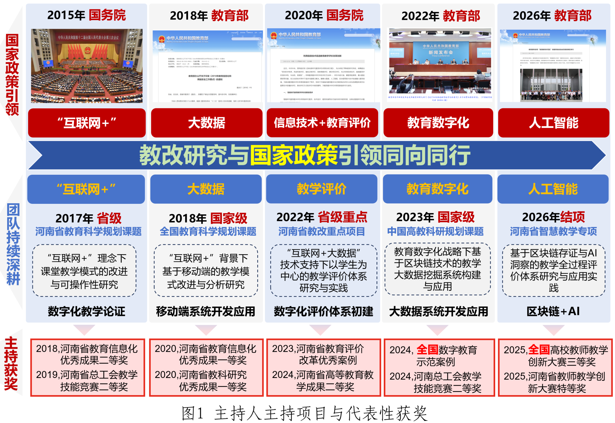 自2015年国家启动“互联网+”行动计划,至2026年全国教育工作会议明确“深化评价改革、推进人工智能赋能教育”的目标,教学评价正经历从数字化支撑向数智化引领的历史性跃升。近十年来,本成果始终与中国教育现代化战略同频共振。依托主持人连续主持的2项国家级、3项省级教改教研项目,团队打破项目间的壁垒,沿着“方案论证—系统构建—数据挖掘—智能重塑”的路径持续攻关,实现了评价范式的研用并进与应用系统的迭代优化。