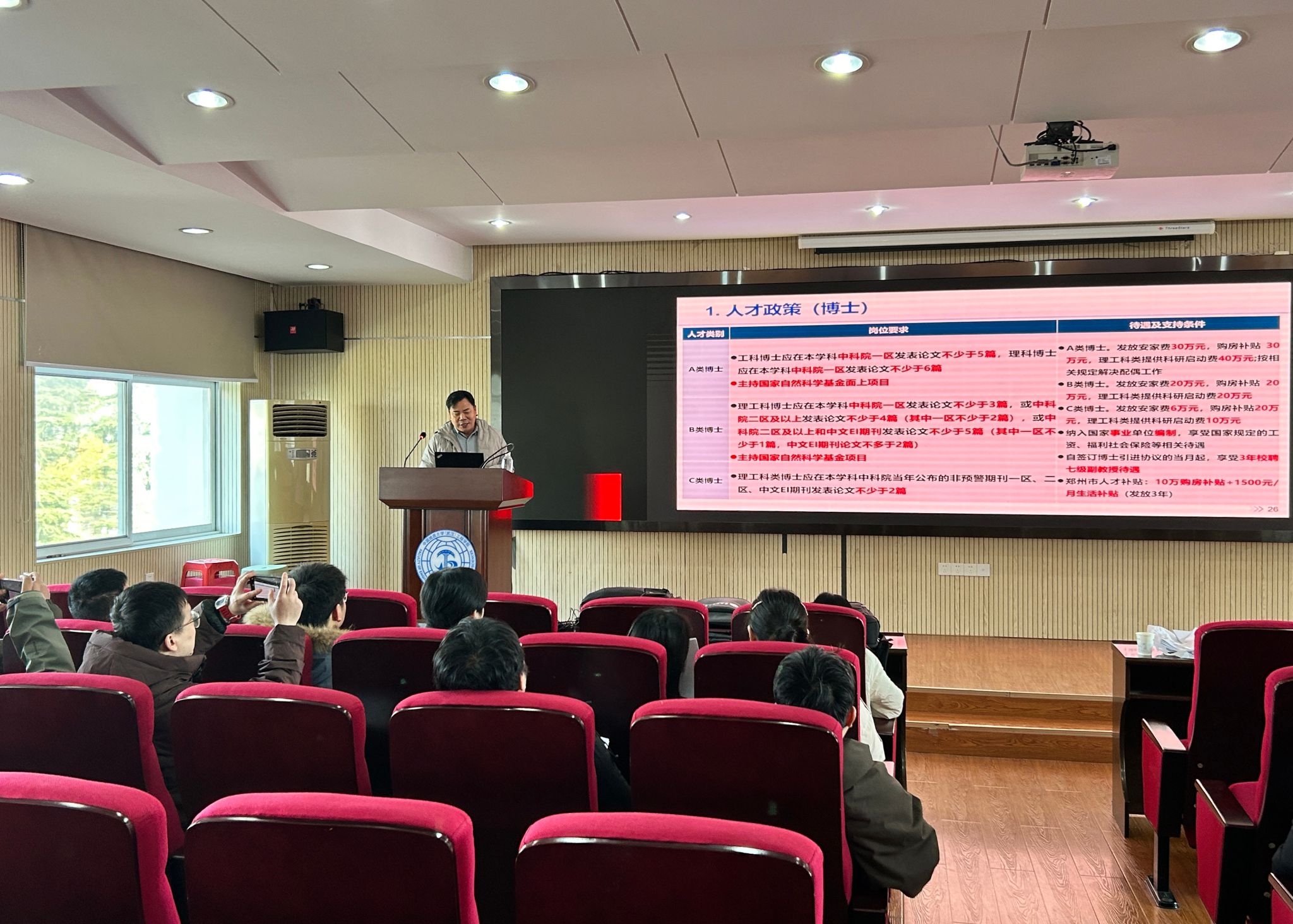 在随后的博士招聘宣讲会上,数十位博士生踊跃参与。董金玉院长针对学校人才引进政策、薪酬待遇、科研支持、职业发展路径等大家关心的问题进行了全面细致地解答,现场互动氛围热烈。此次走访交流与招聘宣讲活动,不仅搭建了学院间合作的桥梁,也为学院吸纳优质人才拓宽了渠道,取得了良好的预期效果。