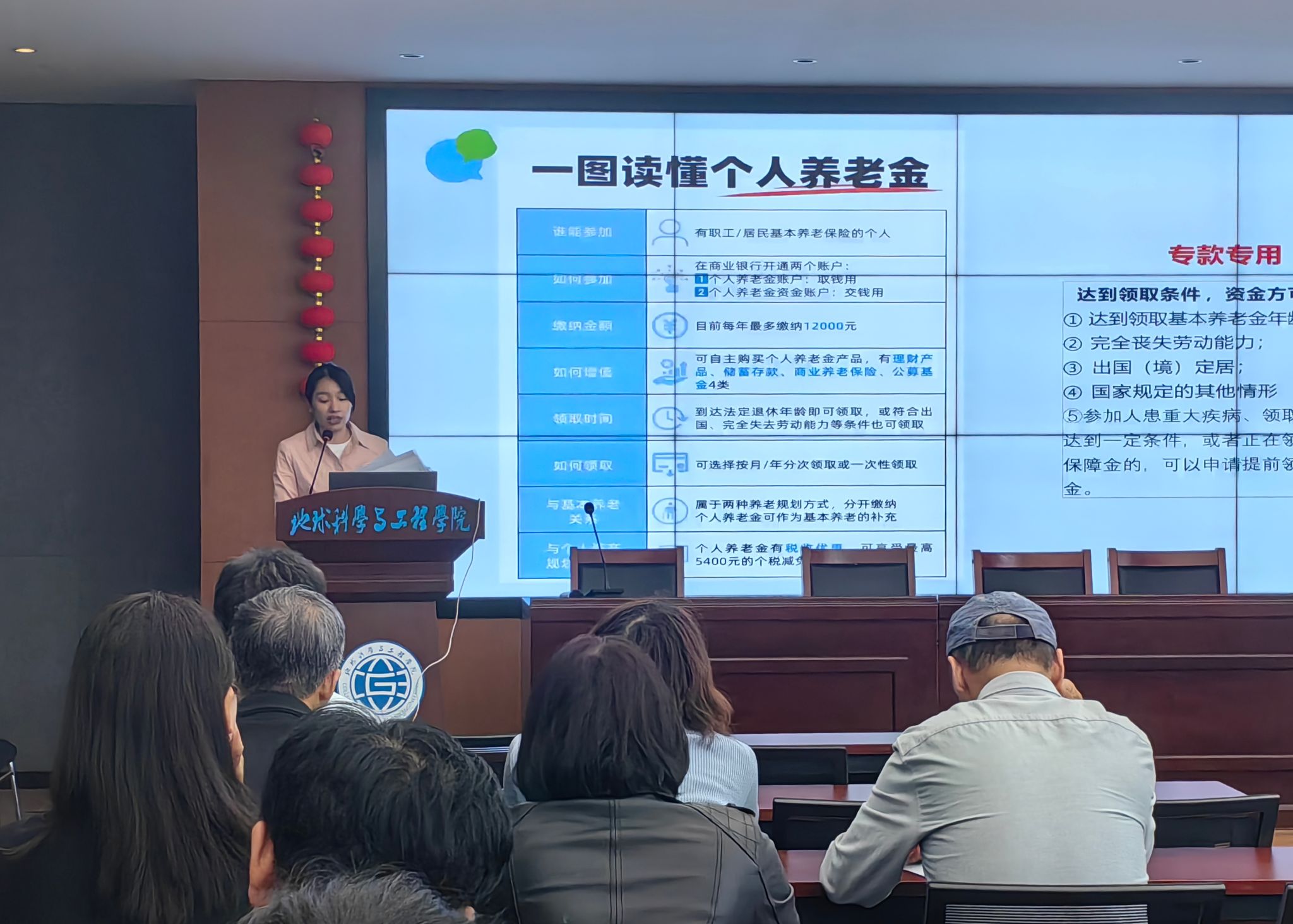 本次宣讲会是学院分工会落实学校工作要求、服务教职工实际需求的一项具体举措。旨在贯彻落实国家关于多层次养老保险体系建设的决策部署,帮助学院教职员工准确理解个人养老金制度及相关配套政策,增强养老规划意识和风险保障意识。学院分工会将继续发挥工会组织的桥梁纽带作用,做好各项政策性福利的精准传达,积极搭建政策沟通交流平台,努力为教职工办实事、解难题,不断提升广大教职工的获得感、幸福感和安全感。