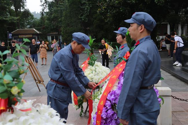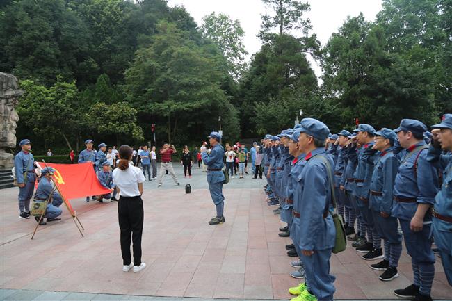 在红军山烈士陵园,红军烈士纪念碑四周的浮雕展现了当年红军浴血奋战的场景。全体学员向革命先烈三鞠躬,并向红军烈士纪念碑敬献花篮。校党委副书记、校长刘文锴为烈士花篮认真整理缎带,向永垂不朽的革命先烈表达崇高的敬意。校党委副书记、工会主席马书臣领誓,全体学员庄严肃穆、铿锵有力地面对党旗重温入党誓词。