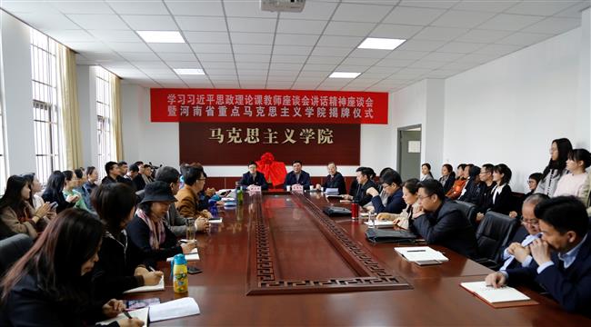 学习习近平思想政治理论课教师座谈会讲话精神座谈会暨河南省重点马克思主义学院揭牌仪式现场