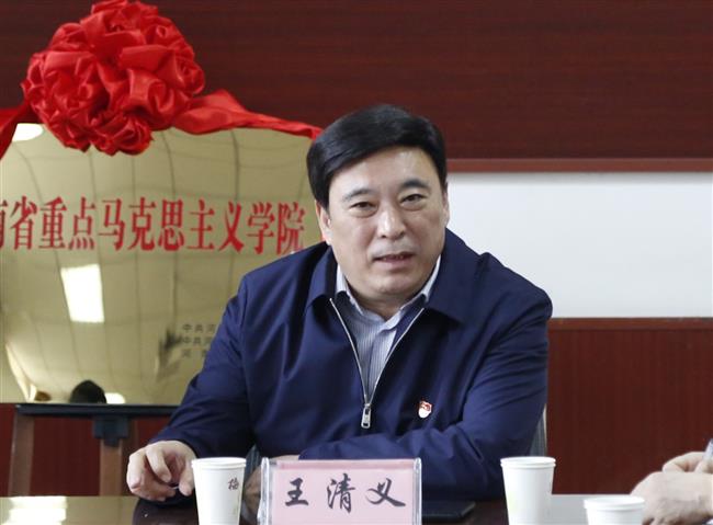 王清义讲话时对我校马克思主义学院被评为河南省首批重点马克思主义学院表示热烈祝贺!王清义指出,近年来马克思主义学院在学科建设、教学改革、高层次人才引进、学术交流、团队建设等方面工作卓有成效。马克思主义学院被批准为河南省首批重点建设的马克思主义学院,是一个重要的里程碑。马克思主义学院一定要抓住重大机遇,全面提升内涵,以建设河南省重点马克思主义学院和申报马克思主义理论博士点为契机,实现自身跨越式发展。王清义指出,思政理论课教师要把习近平总书记在思政理论课教师座谈会讲话精神与习近平总书记系列重要讲话融会贯通,结合起来学习,重点从六个方面深刻理解和把握,争做“四有”、“六要”好教师。一要深刻理解和牢牢把握办好思想政治理论课的重大意义;二要深刻理解和把握办好思想政治理论课的根本所在;三要深刻理解和把握办好思想政治理论课的深厚基础;四要深刻理解和把握办好思想政治理论课的关键所在;五要深刻理解和把握思想政治理论课创新发展的重要要求;六要深刻理解和把握加强党的领导是办好思想政治理论课的根本保障。