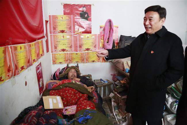 校党委书记王清义到刘继增家慰问,指着孩子的奖状鼓励他们坚定信心、坚强生活