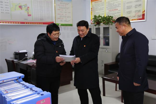 校党委书记王清义在夏庄村委会查阅党组织建设资料