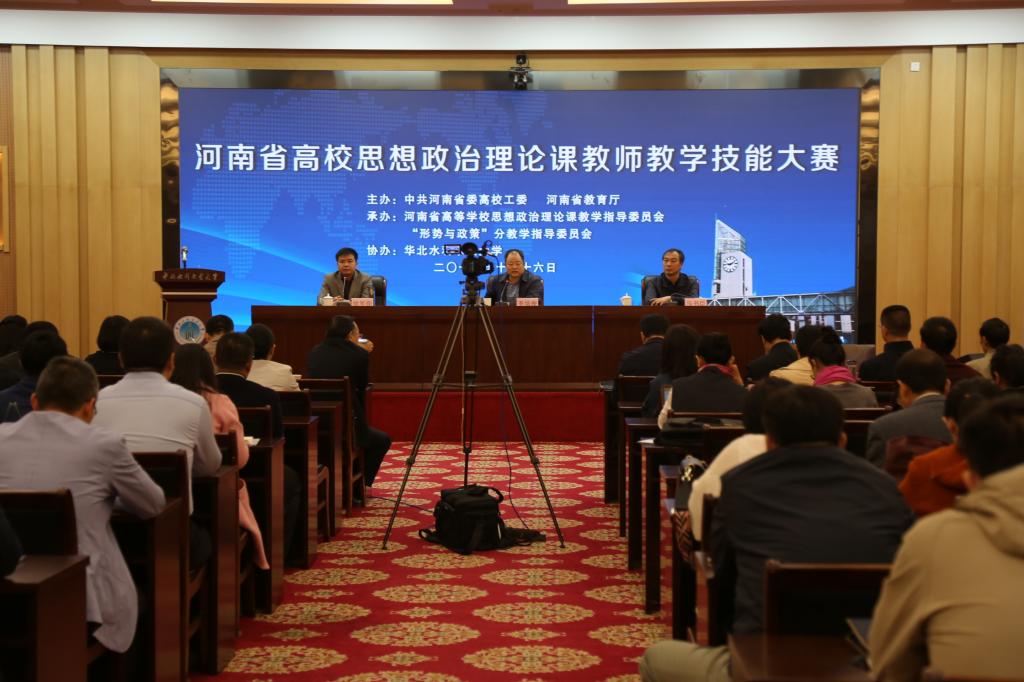 10月16日上午,由中共河南省委高校工委、河南省教育厅主办,河南省高等学校“形势与政策”分教学指导委员会承办,华北水利水电大学协办的“形势与政策”课教学技能大赛在我校举行。省教育厅思政处处长李培俊,河南省高等学校“形势与政策”分教学指导委员会主任、校党委副书记、工会主席马书臣等出席开幕式。开幕式由教育厅思政处副处长徐军保主持,来自省内67所高校的参赛选手以及近百名观摩人员参加开幕式。