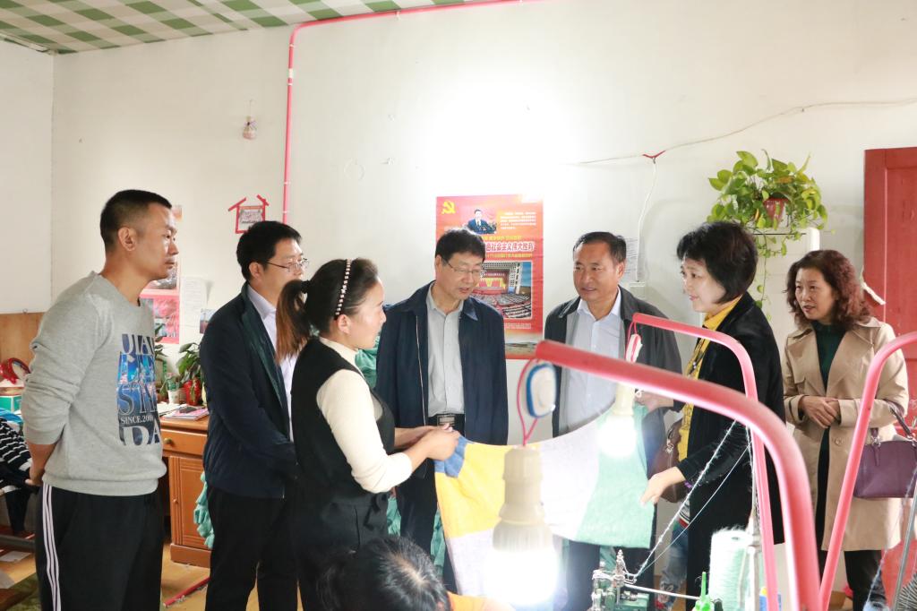 在夏庄村,许科红实地查看了陈楼粉皮生产车间、巧媳妇缝盘加工车间、200KV光伏电站等产业项目,现场提出指导意见。他来到贫困户樊油家中,亲切询问家庭情况,鼓励他们坚定信心,努力改善生活。
