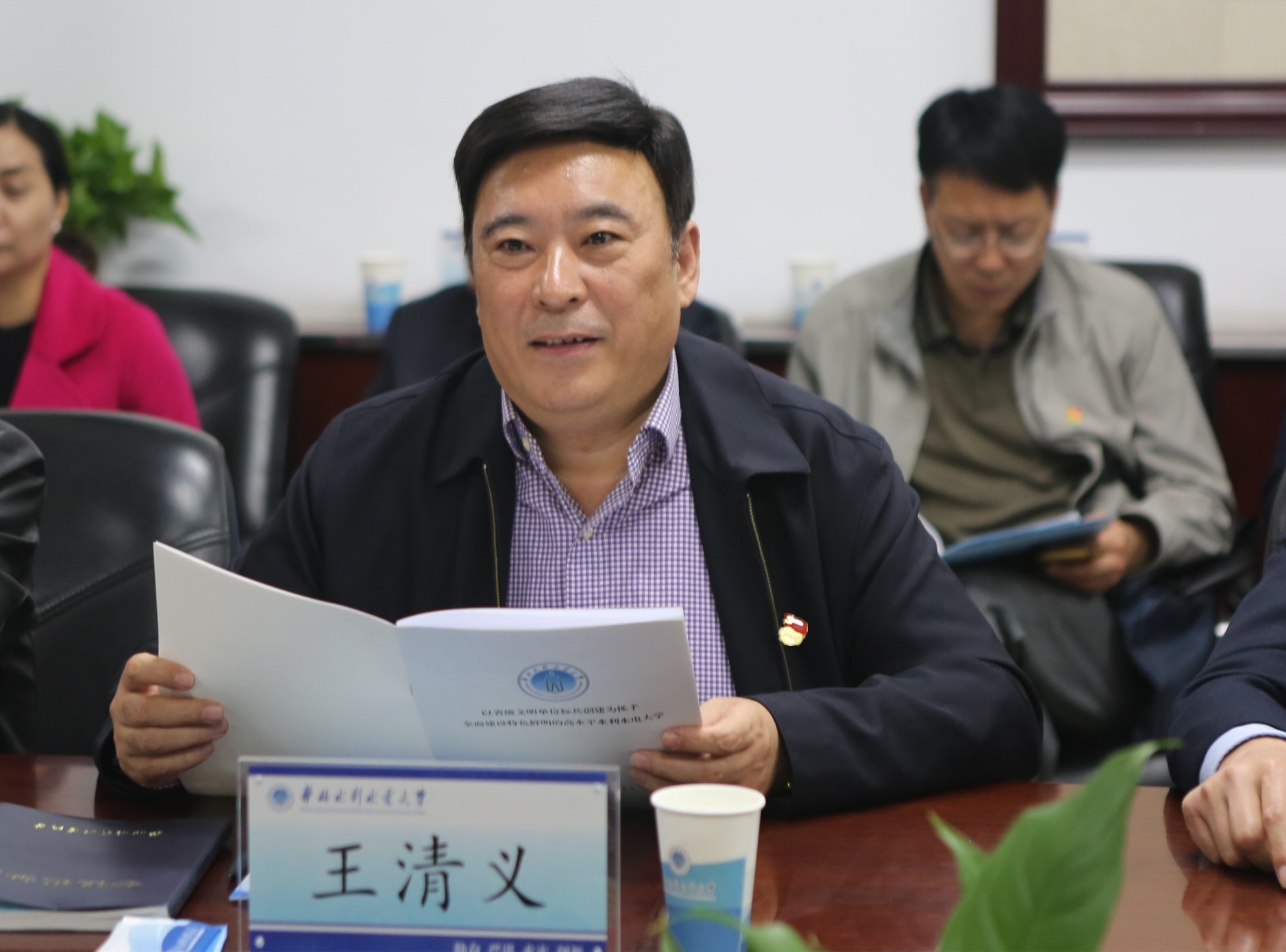 王清义从五个方面,重点介绍了我校精神文明建设的特色工作。一是狠抓意识形态工作,努力建设有中国特色的社会主义大学;二是积极利用新媒体开展大学生思想政治教育和文明教育,形成了以“华水苇渡”为代表的一批网络文化品牌;三是利用“微言大义达人讲堂”,对学生积极开展正面教育;四是抓典型育新人,涌现出一批以孟瑞鹏、华水小水滴志愿服务队为代表的先进个人和集体;五是通过精神文明创建工作,为学校事业发展注入了强大动力,学校社会美誉度持续提升。
