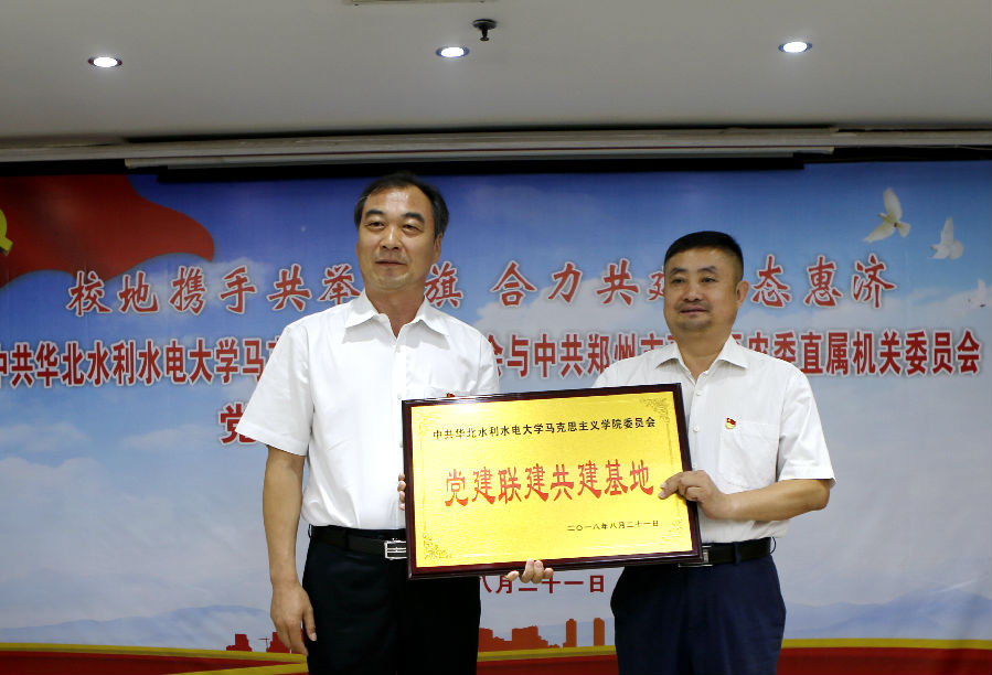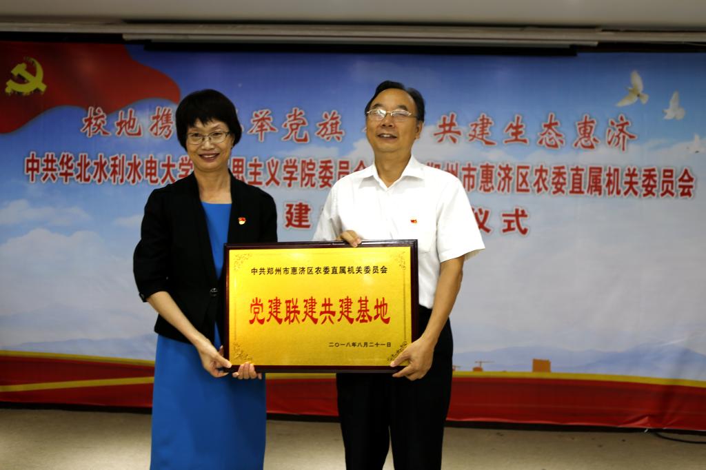 8月21日上午,中共华北水利水电大学马克思主义学院委员会与中共郑州市惠济区农委直属机关委员会在惠济区农委会议室举行党建联建共建签约仪式。校党委副书记、工会主席马书臣,惠济区委常委、组织部长孙梅,惠济区直机关工委,惠济区农委,我校党委宣传部、马克思主义学院等单位有关负责同志参加了活动。