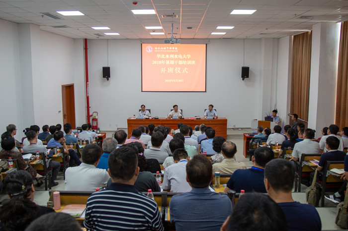 8月28日上午,我校2018年暑期干部培训开班仪式在南水北调干部学院综合楼举行。校党委书记王清义作动员讲话,校长刘文锴作专题辅导报告,南水北调干部学院主任、中共淅川县委常委孙富国致辞,全体校领导和正处级干部参加了开班仪式。
