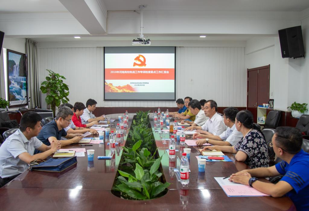 6月20日上午,由省委高校工委专职委员高治军任组长的省高校统战工作专项督查组莅临我校,对我校统战工作进行督查指导。汇报会在龙子湖校区第三会议室举行,校党委副书记、工会主席马书臣及有关职能部门负责人参加了会议。