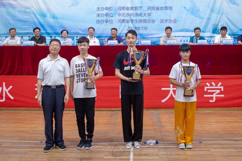 我校武术队在主教练郭凯老师指导下参加了本次比赛,共获得两枚金牌、一枚铜牌、两个第六、一个第七、两个第八名的省级好成绩。留学生代表队在冯振旗教授教练下,经过努力拼搏获得“最佳参与奖”。本次比赛我校组织有序、措施得当,得到了省教育厅认可,最终获得“优秀组织奖”。李培老师在执裁中严谨规范最终获得“优秀裁判员”,我校志愿者为大会无私奉献,任劳任怨,有16人获得“优秀志愿者”称号。(摄影:龙腾云、傅文骏,等)