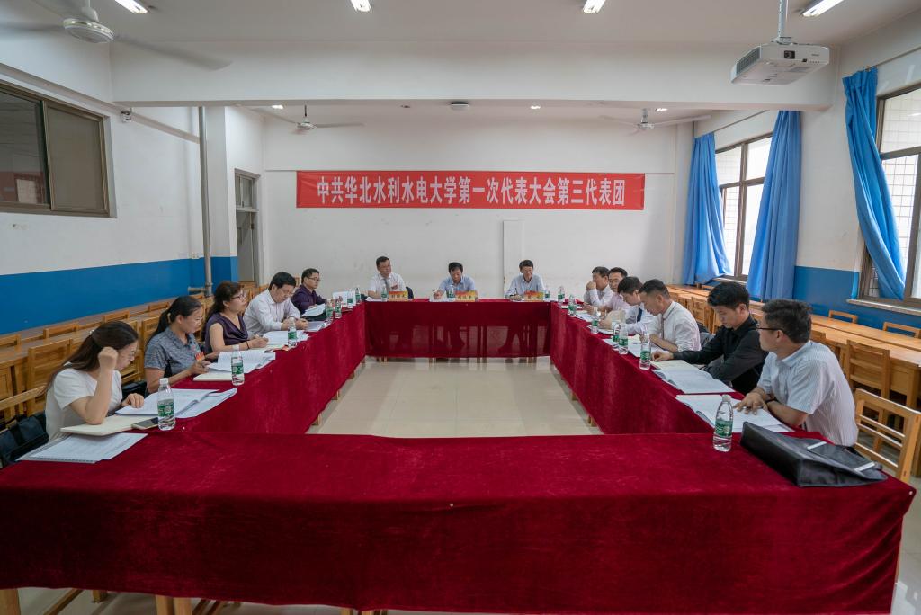 5月26日下午,中共华北水利水电大学第一次代表大会各代表团分团讨论会在龙子湖校区各分会场举行。来自全校各级党组织的10个代表团的代表,分团讨论和审议了《牢记大学使命 聚力内涵发展 为建设特色鲜明的高水平水利水电大学而努力奋斗》的党委工作报告,《强化监督执纪问责 推进全面从严治党营造风清气正的良好政治生态》的纪委工作报告,《中共华北水利水电大学委员会关于党费收缴、使用和管理情况的报告》。