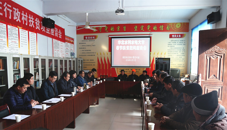 马书臣、高京燕一行将扶贫款交予夏庄村,并为贫困户送去了米、面、油等春节慰问品。我校现任驻村第一书记司保江详细汇报了履职三个月的工作情况和下一步工作规划;前任第一书记张胜前饱含深情地回顾了驻村工作、汇报了工作体会。