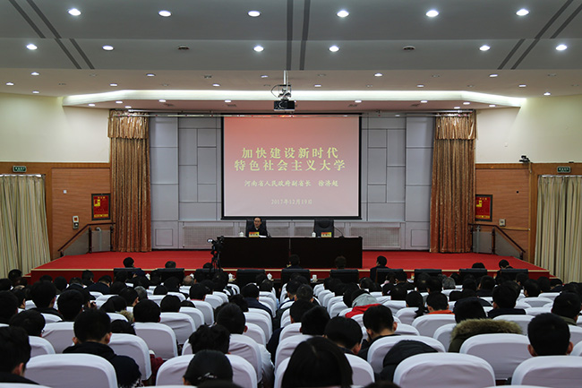 徐济超以《加快建设新时代特色社会主义大学》为主题,从新时代国家发展的蓝图、新时代中原大省的历史地位、新时代大学的使命担当、新时代特色社会主义信念教育、新时代特色社会主义办学的宗教认识、新时代河南高教的重大任务、新时代高教发展的动力效率体制机制七个方面,深入浅出地分析了我省省情和发展前景,系统阐释了新时代对高等学校的新要求,对河南特加快建设新时代特色社会主义大学提出了殷切希望。