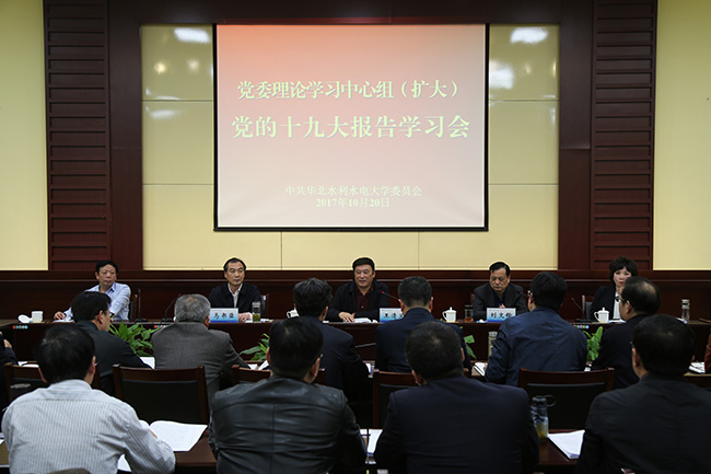 10月20日下午,我校在第四会议室召开党委理论学习中心组(扩大)会议,专题学习习近平总书记代表十八届中央委员会向党的十九大所作报告。全体在校校领导,党委理论学习中心组全体成员,各分党委、党总支、直属党支部书记,校长办公室主任、校团委书记参加会议。会议由校党委书记王清义主持。