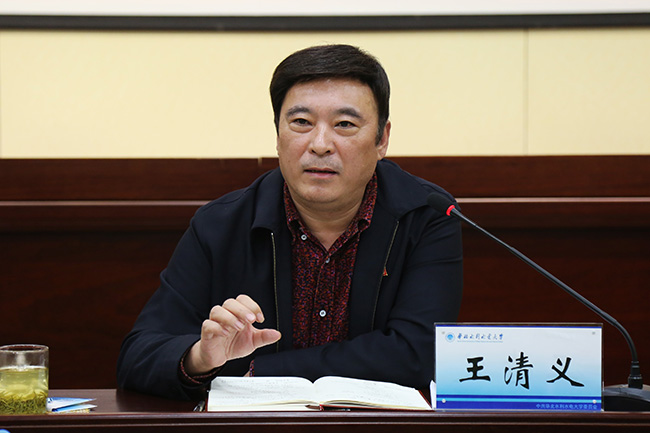 最后,王清义对学校下一步深入学习贯彻党的十九大精神提出明确要求:一要深入学习、提高认识,充分认识学习贯彻党的十九大精神的重大意义;二要重点把握六个方面的问题,即“中国特色社会主义进入新时代”的新论断、我国社会主要矛盾发生变化的新特点、新时代中国特色社会主义发展的总任务和“两个阶段”的战略安排、新时代中国特色社会主义思想的八个“明确”、新时代坚持和发展中国特色社会主义的十四个基本方略、新时代党的建设的新要求;三要坚持理论联系实际原则,在办学实践中努力做到“四个结合”;四要切实加强组织领导,精心安排部署,迅速在全校范围掀起学习宣传贯彻党的十九大精神的热潮。