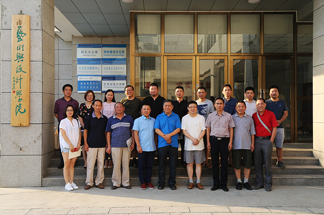 与会人员在华北水利水电大学艺术与设计学院门前合影留念