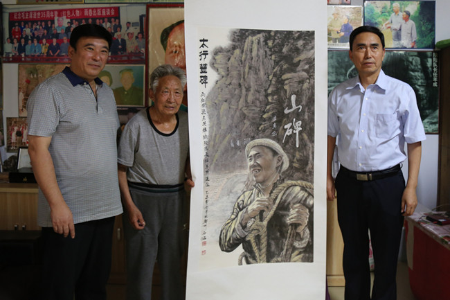 我校党委书记王清义、党委副书记石品专程前往任羊成老英雄家中拜望并赠送画作