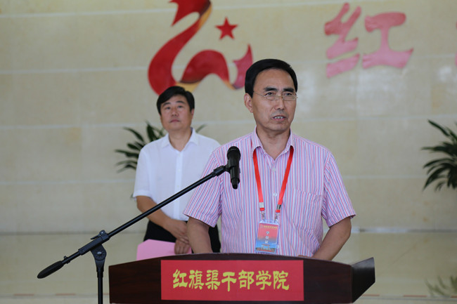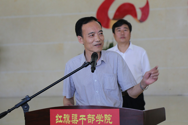 代表红旗渠干部学院在赠送英模画作仪式上致辞