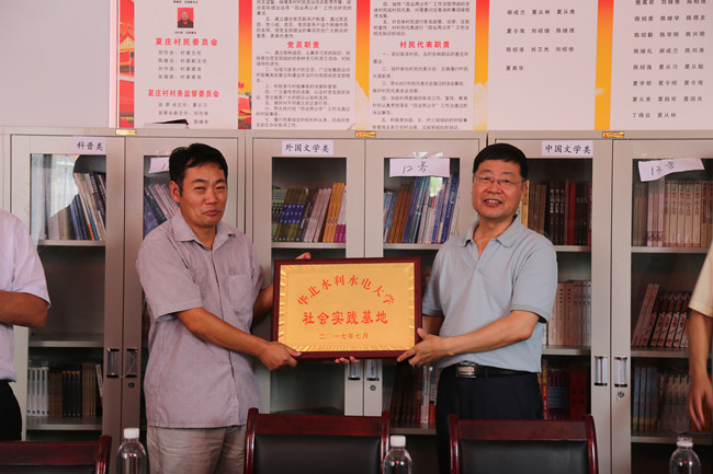 校纪委书许科红代表我校向鹿邑县丘集乡夏庄村授牌“华北水利水电大学大学生社会实践基地”