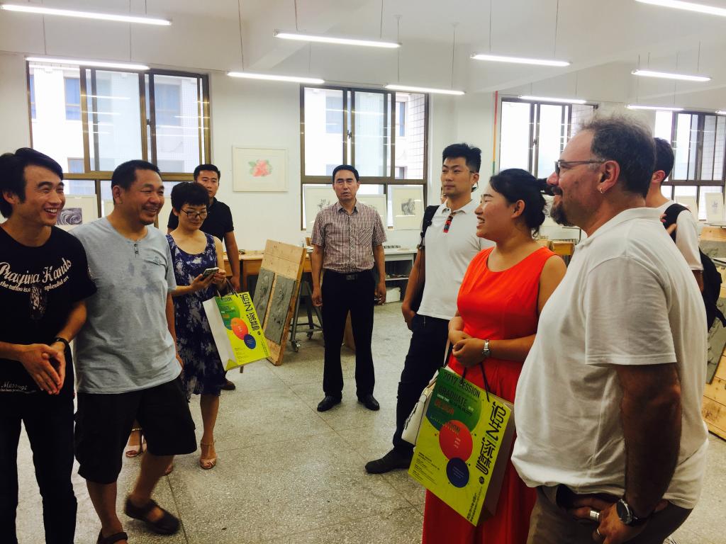 利诺·斯奎兰特教授一行参观艺术与设计学院丝网印刷工作室