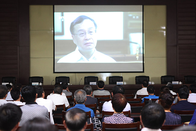 7月26日上午,我校全体校领导、各党委、党总支、直属党支部书记、校属各单位主要负责人集中观看了由中央纪委宣传部、中央电视台联合摄制的电视专题片《永远在路上》。