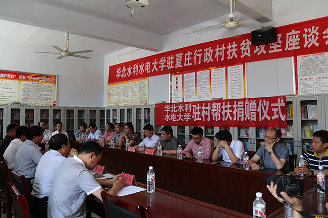 在夏庄村村委会会议室,副校长解伟与县领导就扶贫工作进行了深入座谈,进一步了解村里的基本情况、产业发展现状和规划、基础设施建设等问题。