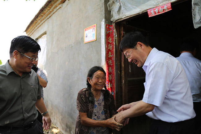 6月7日,我校副校长解伟、纪委书记许科红携华水有关部门一行17人到学校扶贫帮扶点鹿邑县夏庄行政村指导精准扶贫和“三夏”生产慰问工作。副校长解伟一行首先看望了我校驻村第一书记张胜前同志,对他在驻村扶贫工作方面取得的成绩进行了充分肯定,并勉励他继续为扶贫工作做新贡献。后来在县委副书记、县长梁建松等县领导陪同下到帮扶贫困户家中慰问,副校长解伟将慰问金共计3000元依次交到贫困户手中,并详细询问他们的收入改善情况、目前有哪些困难以及希望解决的问题等。最后在夏庄村室举行捐款捐物仪式,捐赠仪式上将由机关党委第四支部(纪委监察处、国资处)、机关党委十五支部(基建处)及机械学院党委捐赠的9730元,机关党委十支部(招生办公室、就业指导中心)、数学与信息科学学院党委及国际教育学院党委捐赠的3000元交给结对帮扶对象。