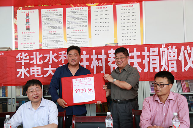 副校长解伟向夏庄村委转交我校职工捐赠款项