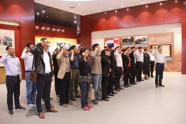 展馆由“鉴史问廉”“光辉历程”“警钟长鸣”三个主题展厅组成。每个展厅都紧扣廉政文化,采用传统文化和现代科技相结合的方式,教育广大党员干部洁身自好、勤政廉洁。每到一处,大家都认真观看,仔细聆听讲解,接受廉政文化教育。展厅里一组组翔实的史料、一幅幅真实的照片,使大家进一步增强了严以修身、严以用权、严以律己的自觉性和推进全面从严治党的责任感。在“光辉历程”展厅中,全体党员庄严地攥起右拳,面对党旗,在许科红书记的带领下,重温入党誓词,决心铭记誓言,不忘初心,继续前行。