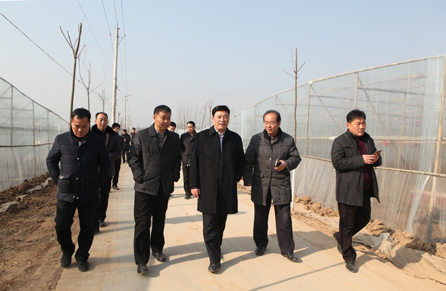 王清义书记一行参观指导正在施工的有机黄瓜蔬菜大棚种植基地