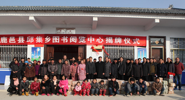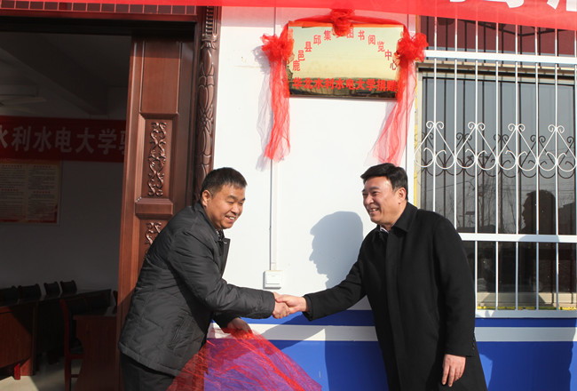校党委书记王清义和鹿邑县委副书记付吉广共同为“鹿邑县邱集乡图书阅览中心”揭牌