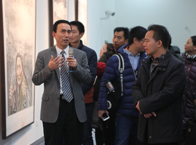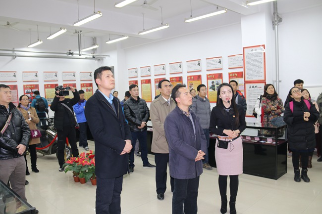梁均达一行首先赴河南省美术馆,参观了“时代镜像——石品中国人物画作品展”。我校党委副书记石品对画作的创作背景、艺术构思和作画体会进行了详细讲解。参观完展览后,梁均达讲到,中原大地英雄辈出,参观作品展很受教育。石书记的作品思想性、艺术性都很强,而且贴近现实、贴近生活、贴近大众,激发起大家对激情燃烧岁月的怀念和对英雄群体的敬仰。