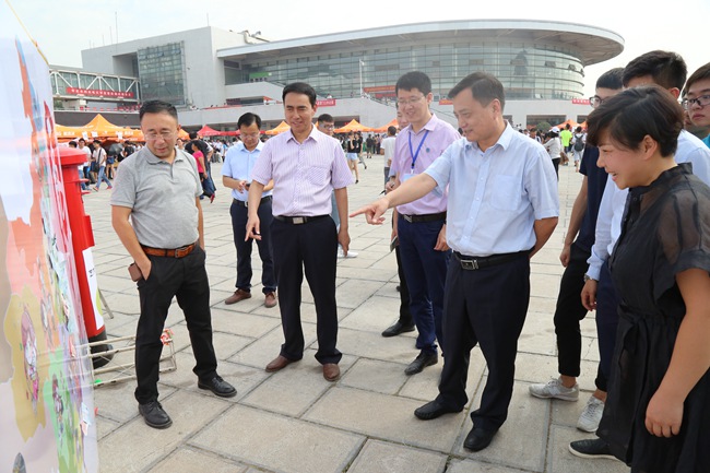 校长刘文锴等校领导在艺术与设计学院参观迎新展板