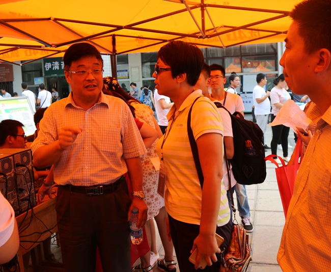 校党委书记王清义等校领导在资源与环境学院指导迎新工作