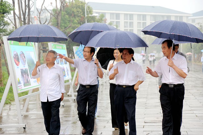 复查组专家实地考察我校校园环境、参观精神文明建设宣传展板