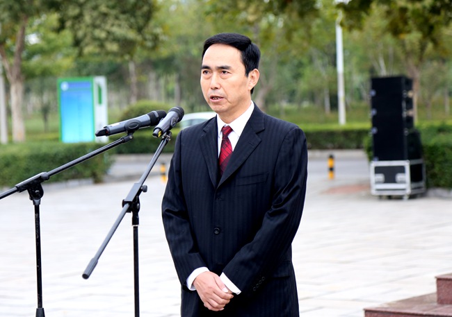 校党委副书记石品在烈士纪念日暨建国67周年升旗仪式上讲话