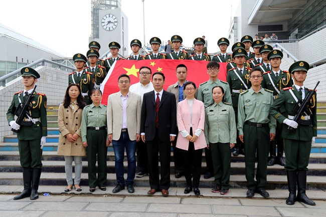仪式结束后,校党委副书记石品等与国旗护卫队队员合影