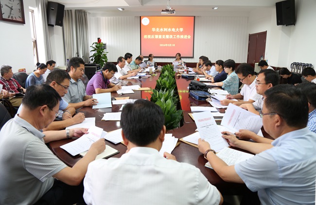 与会同志共同学习了《中共华北水利水电大学委员会办公室关于巡视反馈意见自查自纠及整改工作的补充通知》(以下简称《通知》);校党委副书记、校巡视整改工作领导小组办公室主任马书臣对巡视反馈意见自查自纠及整改工作进行了安排、部署。