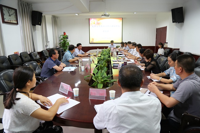 8月22日上午,新学期开学第一天,我校在龙子湖校区第三会议室举行“大学生思想政治理论课”专题座谈会。河南省教育厅思政处处长李培俊,校党委书记王清义、党委副书记马书臣,党委宣传部、教务处、科技处有关负责同志,马克思主义学院党政负责同志、教研室主任以及教师代表等参加了座谈。校党委书记王清义主持会议。