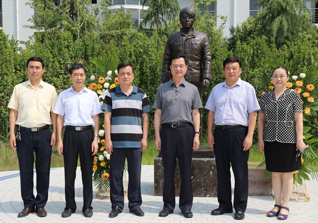校领导与刘林同志一行在孟瑞鹏雕像前合影