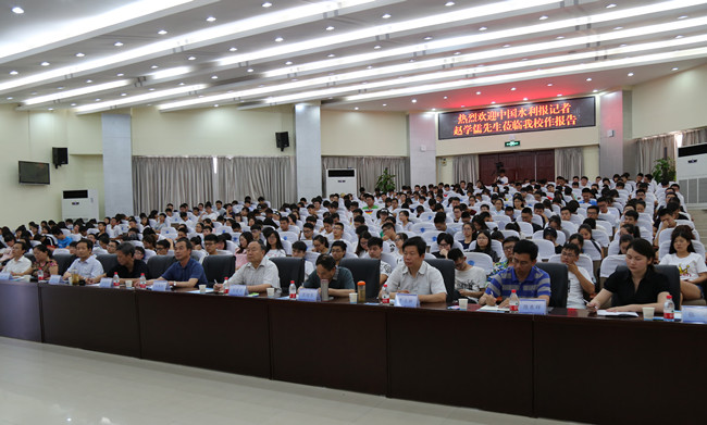 6月27日下午,“圆梦南水北调”大型报告会在我校龙子湖校区第一报告厅举行,知名报告文学作家、中国水利报记者赵学儒受邀作报告。河南省社科院副院长刘道兴、河南省社科院“南水北调精神调研组”全体成员,校党委副书记马书臣、党委宣传部、水利学院、资源与环境学院、环境与市政工程学院共计400余名师生代表聆听了报告会。报告会由校党委副书记马书臣主持。
